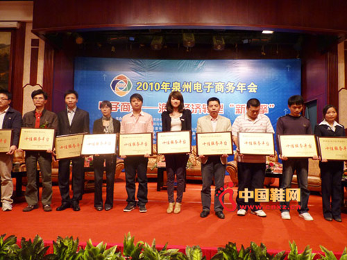 2010年10月29日-30日,第八屆泉州市科學(xué)技術(shù)協(xié)會年會暨2010年泉州市網(wǎng)絡(luò)營銷與電子商務(wù)協(xié)會年會在泉州酒店南馨樓滿江紅廳隆重召開。“泉州電子商務(wù)產(chǎn)業(yè)協(xié)作聯(lián)盟”正式成立,泉州市相關(guān)領(lǐng)導(dǎo)出席年會。在本屆年會上,中國鞋網(wǎng)榮獲“2009~2010年度泉州電子商務(wù)十佳服務(wù)平臺”。