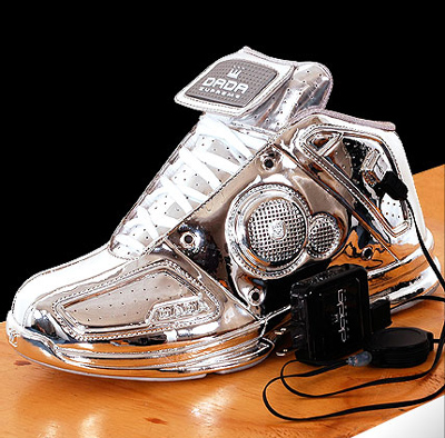 Dada計(jì)劃在4月6號(hào)發(fā)布他們的它的具有儲(chǔ)存和播放MP3能力的"Code M" 波鞋。儲(chǔ)存和播發(fā)的系統(tǒng)是建立在波鞋的腳跟和鞋舌上,使用者需要聽音樂可通過附送的無線耳機(jī)接收在波鞋的信號(hào),而當(dāng)使用者在運(yùn)動(dòng)場(chǎng)上進(jìn)行比賽,或是不方便使用耳機(jī)時(shí),音樂可改由波鞋內(nèi)建的揚(yáng)聲器播出。