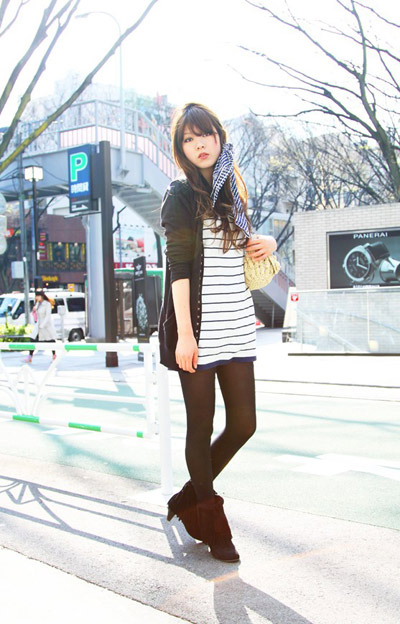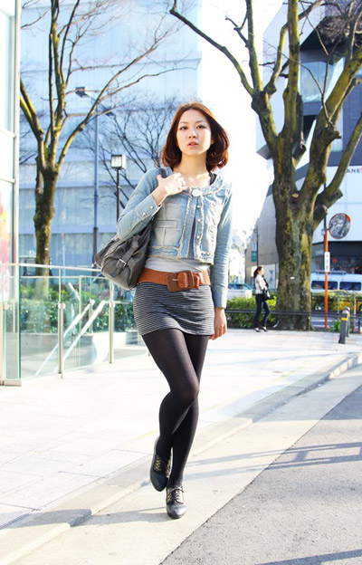造型點評:黑絲,短裙,寬腰帶,白底,橫條紋。將這幾個元素混搭在一起。你就算是學會我們這次的日式街頭精髓了。夏日,趕緊來試試你的黑絲襪吧!