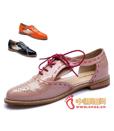 難得看到偏甜美的牛津鞋,巴洛克款式,側鏤空,漆皮面的,糖果色,上腳美。