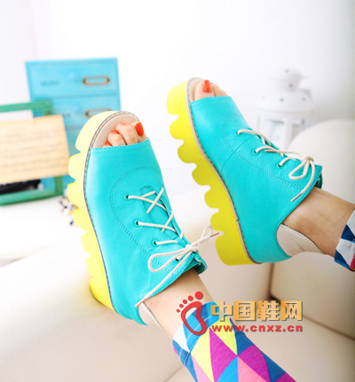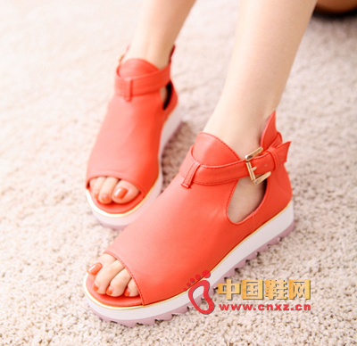 拼色厚底涼鞋,上身后倍顯典雅、可人,帶來輕松隨意的休閑感覺,展現了女人溫柔的風情。