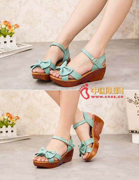 牛皮蝴蝶結高坡跟涼鞋,極具歐美范兒的一款時尚美鞋。