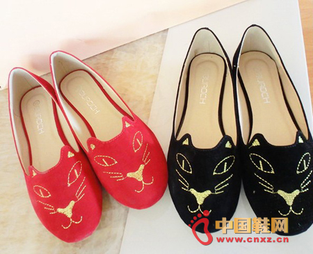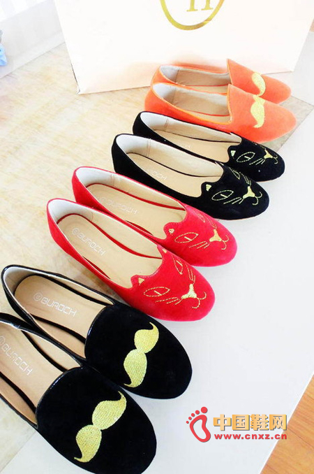2012年絕對新款流行款式,趣味的胡子和貓臉裝飾,亮麗的鮮艷色調,讓這雙平底鞋增添了許多趣味性。