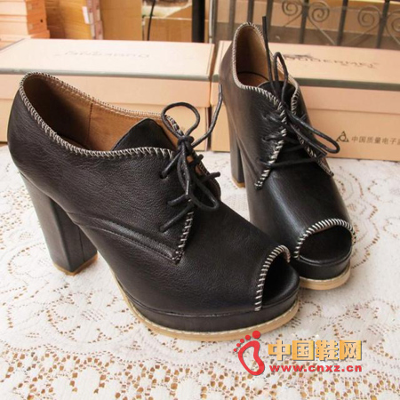 多爾美DUOERMEI英倫風粗跟魚嘴鞋,非常時尚的款式,百搭的色調,配上時髦的連衣裙或褲裝都顯得人高挑纖長很性感!