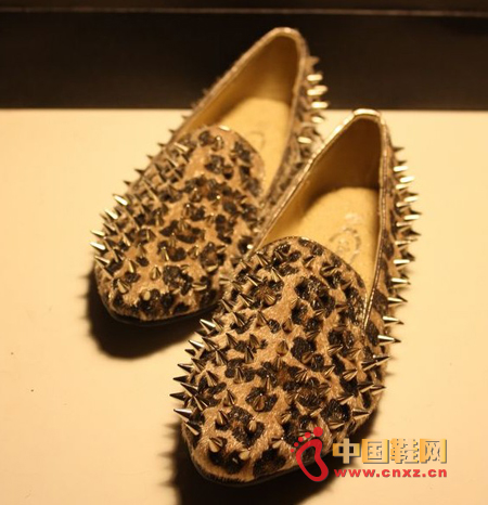 歐美風(fēng)朋克范鉚釘豹紋平跟鞋,潮流雜志都有在推薦的款,全鉚釘?shù)脑O(shè)計(jì)夠cool 夠帥氣,歐美風(fēng)的個(gè)性女生一定要購(gòu)入的一款,只要與普通的衣服搭配都很出彩。