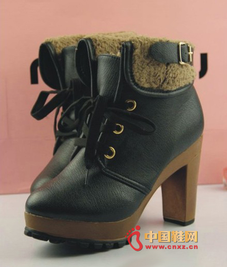 2012年冬季韓版粗跟裸靴,毛絨翻領(lǐng)和防水臺(tái)設(shè)計(jì),上腳顯氣質(zhì),靴型略帶復(fù)古的感覺,內(nèi)里是毛絨,保暖極了,在靴口處可翻折露出內(nèi)里的毛絨,增添了靴子的層次感,非常的優(yōu)雅。