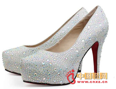 中國鞋網(wǎng)3月29日訊,婚禮前要準(zhǔn)備的東西實在太多了,婚禮布置、訂婚車、訂酒店、選婚紗、發(fā)請?zhí),結(jié)婚前的日子會讓你忙到暈;樾,這個重要的環(huán)節(jié)就常常被新娘遺忘了,婚禮上只能胡亂對付了。不要以為婚鞋就只是白色的高跟皮鞋,蕾絲、流鑲鉆、羽毛……這些帶有熱門元素的鞋款,也一樣可以出現(xiàn)在婚禮上。今天我們來看看一些閃閃發(fā)亮的鞋子,不僅適合婚禮上穿著,平時出席宴會活動也是很好的選擇哦。