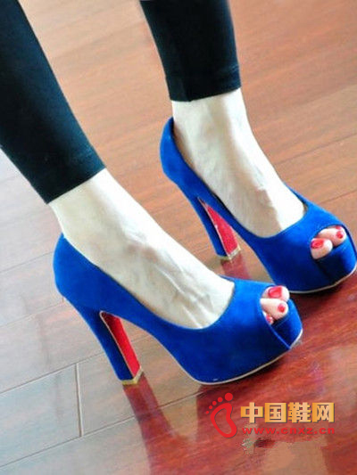 寶藍色魚嘴高跟鞋,絨面材質,是今年最為流行的鞋子款式,高貴典雅中透著迷人的氣質,穿上這款高跟鞋子絕對可以與眾不同哦。