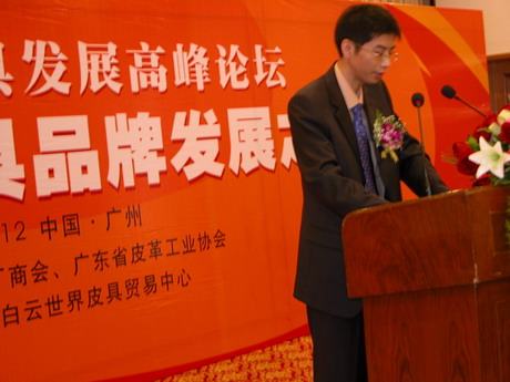 2005年9月12日下午,由廣東鞋業廠商會、廣東省皮革工業協會共同主辦,廣州白云世界皮具貿易中心承辦的中國鞋業皮具發展高峰論壇在廣東迎賓館松林廳舉行。