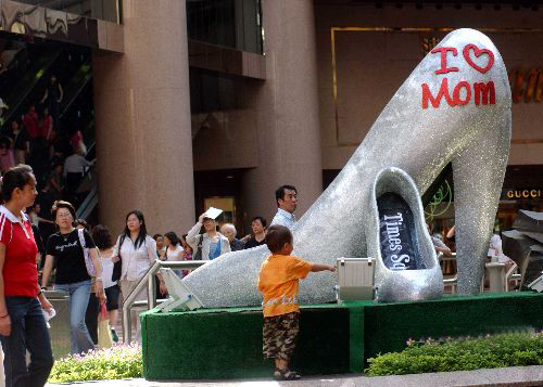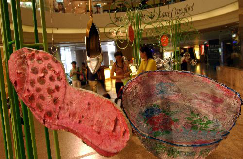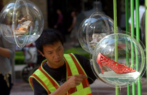 香港時代廣場于母親節(jié)期間,舉辦名為“女·鞋時代”將40款5個著名品牌的高跟鞋展出。各展臺的設(shè)計創(chuàng)意都非常別致。 |