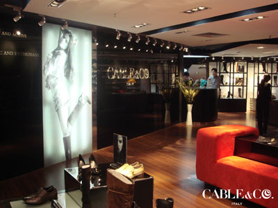 2006年10月10日CABLE&Co.首家旗艦店進駐廣州世貿(mào),以“時尚表情十足的經(jīng)典黑白空間”與消費者見面。CABLE&Co.旗艦店,整個空間以“黑白灰”為基調(diào),令每對高舉復古中性旗幟,傳承一貫的優(yōu)雅細膩,以奢華低調(diào)的黑色玻璃為引導購物的動線,別致的現(xiàn)代歐式壁面陳列柜錯落兩側(cè),弓形交織的雙色沙發(fā)可見創(chuàng)意者的完美主義情節(jié),營造出智慧與浪漫、個性不羈、愜意優(yōu)雅的格調(diào)、及舒適生活的現(xiàn)代感受。
