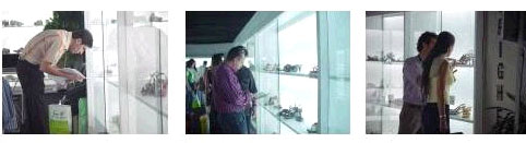 展區的獨特布置和展品的精心擺設吸引了不少采購商駐足觀賞。不少采購商一邊看鞋款,一邊在《參觀指南》上劃中意鞋款的生產企業的展位,看完鞋款后直奔展位與生產企業進行面對面的,進一步的商洽。