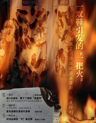 1987年杭州武林門的那把火,10萬多雙溫州劣質(zhì)皮鞋在滾滾濃煙中化為灰燼,這把火燒出了溫州人知恥而后勇的決心;1999年還是武林門,溫州人自己放了一把火,把那些偽造溫州鞋的商人燒得焦頭爛額,燒出了溫州人進(jìn)軍高檔品牌鞋的信心;那么,這次火燒歐盟劣質(zhì)皮鞋,對于溫州鞋企,對于溫州人意味著什么呢?