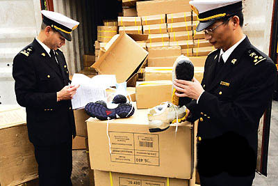 電腦機箱內(nèi)藏假冒名牌運動鞋,走私分子企圖蒙混過關(guān),卻被海關(guān)人員逮了個正著。日前,黃埔新港海關(guān)通過H986系統(tǒng)(大型集裝箱X光檢查系統(tǒng))在深圳某貿(mào)易公司申報出口的一批裝有電腦機箱的貨柜中,查獲夾藏的6450雙侵權(quán)“adidas”運動鞋。