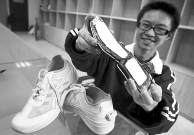既能增高又能按摩的保健鞋、可以唱歌的戒指、生物磁療儀、能打電話的相冊(cè)……昨日,重慶復(fù)旦中學(xué)年僅16歲的初二學(xué)生楊成興拿到由渝中區(qū)教委發(fā)出的邀請(qǐng)函,他被推薦參加全國(guó)青少年科技創(chuàng)新大賽,據(jù)悉,其發(fā)明的保健鞋已在去年成功申請(qǐng)專利。