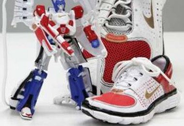 4月25日,日本玩具制造商Tomy公司的一名雇員展示該公司生產的變形金剛之“運動品牌護衛”----“耐克自由7.0”。這雙小型號的塑料耐克鞋可以變成一個名叫“護衛”的玩具機器人。這家玩具商與日本耐克聯合研制的機器人從4月26日起上市,售價2625日元(22美元)。
