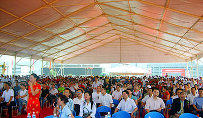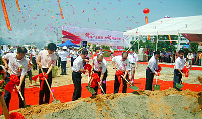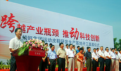 20日上午,隨著中國輕工業聯合會副會長張善梅的高聲宣布:紅蜻蜓運動皮鞋研發生產基地開工。國內第一個運動皮鞋研發生產基地隨之在我縣甌北誕生,中國奧委會副主任吳壽章、市領導卓高柱、朱貴遠、縣四套班子領導盧春中、王立彤、汪大清、謝崇福等以及省、市、縣有關部門負責人參加了開工典禮。