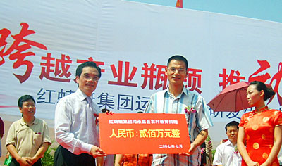 在開工儀式上,紅蜻蜓集團還捐款200萬元支持我縣農村教育事業發展。