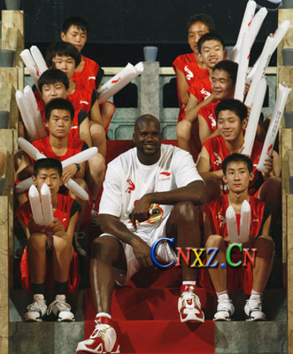 在奧尼爾到來之前,籃球館里就已被李寧籃球選秀營的對抗搞得氣氛火熱。當三分球大賽即將結束的時候,奧胖的出現使籃球館里的人氣陡然增高,當然熱的感覺更是有增無減。奧胖先是老老實實地坐在場邊的沙發椅上觀看隊員們的三分大賽,可是在大牌明星的眼皮底下“班門弄斧”,隊員們頓時沒有了手感,最終來自哈爾濱的鞠明欣僅以13分的成績就奪得了冠軍。