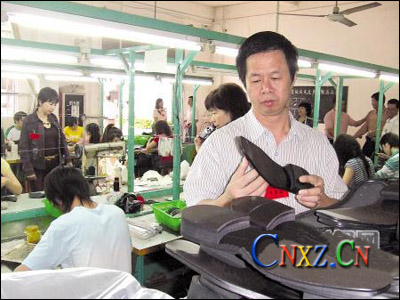 一消費者在參觀必登高鞋業皮具有限公司生產車間。