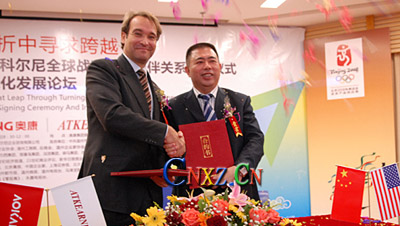 奧康-科爾尼全球戰略合作伙伴簽約儀式暨國際化發展論壇昨日在溫州舉行。國際著名管理咨詢公司科爾尼大中華區總裁班德博士與奧康集團總裁王振滔鄭重宣告:奧康集團與科爾尼正式結成全球戰略聯盟。