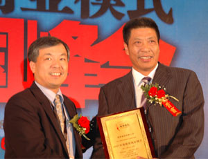 陳宏:2007年度最佳商業模式第六名的得主是請看大屏幕:恭喜奧康集團有限公司,該公司獲獎的商業模式是“深耕產業鏈模式”。 頒獎理由,他們獲獎理由是奧康標準意義在于中國制造從1.0到2.0的跨越,達到一定產業規模之后,奧康變的更加努力,努力鍛造提高產業鏈。