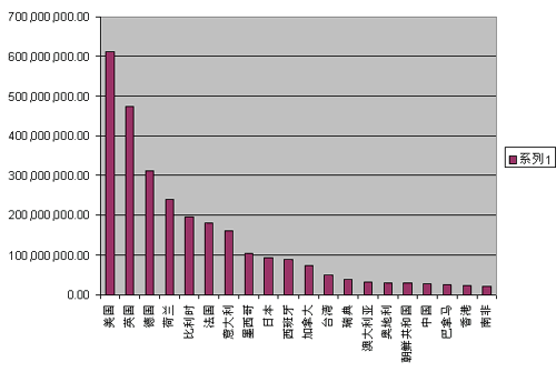 | 其它國家 | 322,599 | 14,2 | 348,514 | 13,2 | 545,521 | 18 |