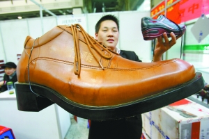 昨天下午,世貿中心舉行的一個展銷會現場,一只碩大的皮鞋吸引了不少顧客的眼球。這只皮鞋來自一家溫州的制鞋企業,鞋長85厘米,寬30厘米。銷售人員告訴記者,公司做這么大一只鞋,是想讓消費者能更清楚的看清鞋子的質量,放心購買;也是想讓這只大鞋作為“招牌”,為公司引來更多的訂單。