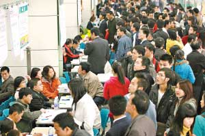 不過,足足等到10時30分左右,應聘者的人流才將招聘現場擠滿。據悉,由于受北方冰凍災害的影響,今年留穗過節的外來工達到了120萬人之多,達到了70%,而在以往,留穗過年的外來工不過45%。他們大都有了固定的工作,直接導致了進場人數的減少。老家在湖南的張紅英就告訴記者,她現在的工作一個月就有2000多元,來招聘會只不過是看看有沒有更好的機會而已。進場不到1小時的賀華清,來自湖北,是個機修工,他說自己已經找到工作了。