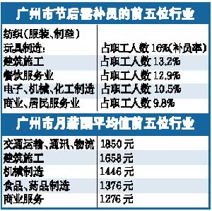 廣州節后需補員的前5位行業。