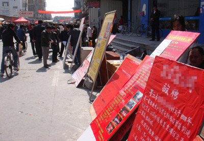 圖為陳埭“招聘一條街”昨日招工現(xiàn)場(chǎng)