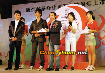 昨晚,康奈宣布今后將為100名國際國內(nèi)的知名人士量腳定做皮鞋;并向來溫的影視明星陳坤、任泉、陳紫函贈送為他們定做的康奈皮鞋。