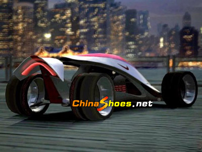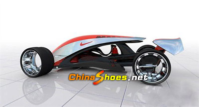 這款耐克牌汽車采用流線型外觀,碩大的空洞輪轂,引領未來潮流在車身側面耐克的紅色表示非常醒目。