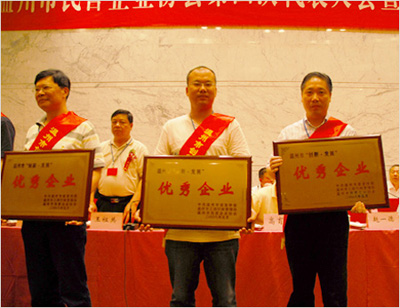 5月28日下午,溫州市民營(yíng)企業(yè)協(xié)會(huì)第四次代表大會(huì)暨民營(yíng)企業(yè)協(xié)會(huì)創(chuàng)新大會(huì)在溫州人民大會(huì)堂隆重召開(kāi)。奧康集團(tuán)、正泰集團(tuán)、德力西集團(tuán)、人民電器集團(tuán)等61個(gè)溫州民營(yíng)企業(yè)榮獲溫州“創(chuàng)新·發(fā)展”優(yōu)秀企業(yè)稱號(hào)。