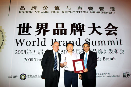 本報訊 6月2日下午,“2008年世界品牌大會暨(第五屆)中國500最具價值品牌”在北京東方君悅大酒店隆重舉行。會上揭曉了由世界品牌實驗室(WorldBrandLab)獨家發布的2008年度《中國500最具價值品牌》排行榜。鴻星爾克的品牌價值再一次獲得肯定,自2005年以來第四次入選該排行榜。
