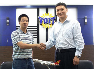 沃特副總裁蔡文國與大新華航空媒介部總經理孫金偉共同簽約