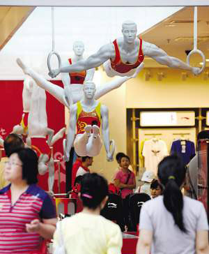 圖為“李寧”專賣店展示運動雕塑。 高林勝 攝