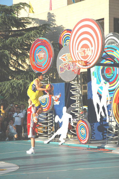 值得一提的是此次扣籃王有兩名選手一起取得進(jìn)入北京總決賽的晉級(jí)卡。這可是前無(wú)古人,后無(wú)來(lái)者,因?yàn)樵谝酝谋荣愔忻總(gè)項(xiàng)目只有一位獲勝者能得到晉級(jí)卡進(jìn)入北京最后總決賽。這兩名選手就是“場(chǎng)上是對(duì)手,場(chǎng)下是朋友”的潘峰和朱炎淼。在創(chuàng)意扣籃中,潘峰和朱炎淼中發(fā)揮了良好的競(jìng)技狀態(tài),雙雙得到評(píng)審的好評(píng)。而在跨桿扣籃中,潘峰身懷絕技,環(huán)環(huán)成功地挑戰(zhàn)高度,最終以1.35米好成績(jī)摘取了扣籃王這一稱(chēng)號(hào);而朱炎淼雖然這一環(huán)節(jié)中表現(xiàn)中稍遜潘峰,但實(shí)力不俗。因此,經(jīng)評(píng)委最后商定,讓兩人雙雙晉級(jí)下一回的比賽。