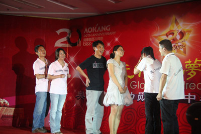 本次晚會(huì)共分追尋20年足跡、20年你我他、展望百年夢想三個(gè)篇章,節(jié)目異彩紛呈。有老員工深情演繹的歌曲朗誦,也有新員工激情釋放的疾歌勁舞,這種新老呼應(yīng)的表演形式,不僅讓我們領(lǐng)略了奧康走過的風(fēng)雨歷程,也讓我們欣慰地看到奧康的天空中冉冉升起的璀璨新星。