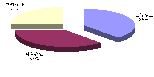 就企業性質而言,國有企業的數量逐年下降;三資企業的數量持平,略有增長;私營企業增長迅速。據我國海關統計,2006年,國有企業的數量從2005年的1654家下降到1444家,出口金額44.5億美元,同比增長4.5%;三資企業的數量為2162家,同比增加了162家,出口87.2億美元,同比增長10.7%;私營企業的數量大幅增長,2006年私營出口企業為9414家,增加了3508家,出口73億美元,增長了29%。