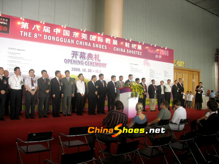 中國鞋網10月30日訊 2008年受球經濟局勢景影響,中國對外貿易支柱行業——鞋類行業正面臨著戰略調整和產業升級諸方面的挑戰。在這特殊時期,鞋業界盛會¬-第八屆中國東莞國際鞋展、鞋機展應運而生,于今天早上于東莞厚街廣東現代國際展覽中心隆重揭幕。