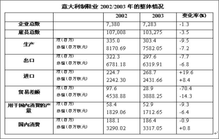 圖4-1 意大利制鞋業2002-2003年的整體情況