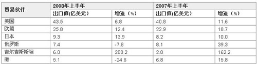 表2-5 2008年上半年我國鞋類出口主要市場情況表