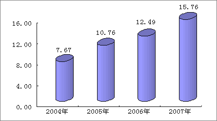 圖2-7 2004-2007年中國鞋出口俄羅斯出口金額增長