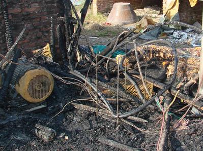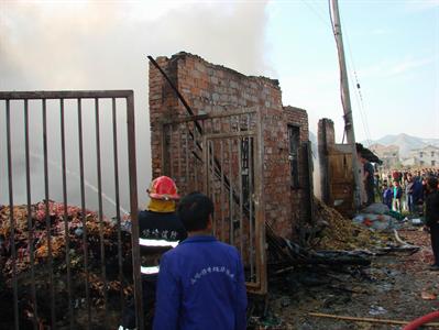 發現火情的是企業里一名叫謝安軍的湖北籍農民工。“我們的宿舍與生產車間中間隔著一間鞋材邊角廢料的堆放間,那會兒我正坐在宿舍里看電視,一股燒焦味撲鼻而來,我馬上警覺起來,快速地跑到了生產車間查看,只見車間里的發電機閥門處產生了電火花,并冒出了煙霧,我跑出去告訴了老板,他拿來了2個滅火器滅火,我則跑到河邊去取水,但這些撲救措施根本阻擋不住火勢的迅速蔓延,不一會兒的功夫,車間里堆放的鞋材邊角廢料就全燒起來了,我是一件東西也沒有搶出來。”親歷了這場大火,謝安軍想想還有點后怕。