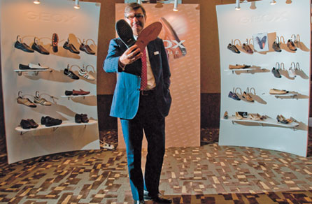也許是摒棄了在意大利早已司空見慣的華麗,而去滿足人類最原始、最基本需求的差異化定位,反而引起了人們對GEOX的注意。如今它的產(chǎn)品已在68個國家銷售,2006年在世界時尚品牌中,其增長速度排名第三,前兩名分別是有著近70年歷史的Coach和170年歷史的Hermes。今年,在休閑鞋類世界排行中,它的增長率僅次于誕生于1825年的其樂(Clarks)。而于本國,每十個人中就有兩人腳上穿著GEOX的鞋子。NPD調(diào)研公司最近的一份報告指出,兩年前,在人們對于鞋子所看重的特點之中,舒適名列第四位,而今,它已超越了品牌與適宜兩條權(quán)重,緊隨時尚之后。