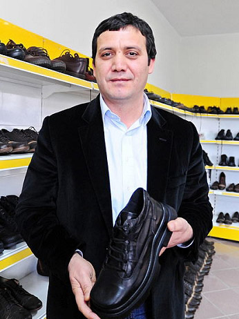 12月22日,在土耳其伊斯坦布爾,巴伊丹制鞋廠老板拉馬贊·巴伊丹展示自己鞋廠生產(chǎn)的一款皮鞋。