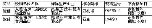 昨日,省工商局對第四季度流通領域銷售進行了監測,其中兩款在東莞市面上流通的旅游鞋被抽檢發現不合格。省工商局稱,目前市場上的鞋類商品多為貼牌加工生產,這次抽檢主要不合格項目是耐折性能,這是旅游鞋穿著壽命的綜合質量指標。