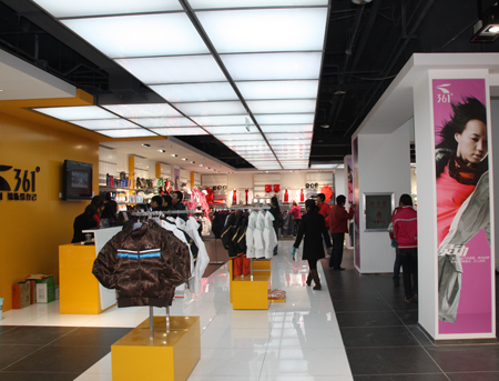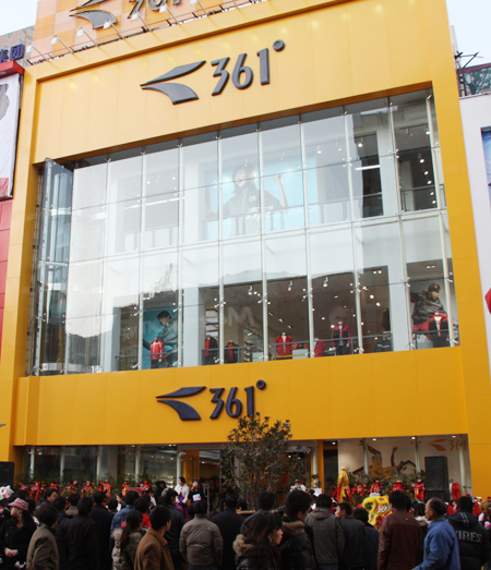 2008年12月24日上午9點, 361°河南省規(guī)模最大的旗艦店——中原旗艦店,落地鄭州市二七商圈最繁華商業(yè)街——“鄭州德化商業(yè)步行街”。 361°中原旗艦店總面積1800平方米,由三層構(gòu)成,一層女裝,二層男裝,三層Factory store 。外觀通體以玻璃幕墻形式表現(xiàn),突顯國際化的品牌形象,引領(lǐng)著鄭州德化商業(yè)步行街品牌走向,并成為當?shù)伢w育用品的標桿。
