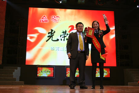 12月29日晚,匹克集團二十周年慶典晚會在泉州師范學院東海校區盛大舉行。在開場舞《開門紅》過后,與會人員全體起立,會場奏響了中華人民共和國國歌。匹克集團創始人、董事長許景南為晚會致辭。整個晚會分為化羽、展翅、高飛、翱翔、展望五個篇章,大部分節目由匹克公司內部員工自編自導,同時,會上還穿插頒發了匹克20周年“特別貢獻獎”、“優秀經銷商”、“優秀供應商”、“我在匹克的日子”征文賽等獎項。